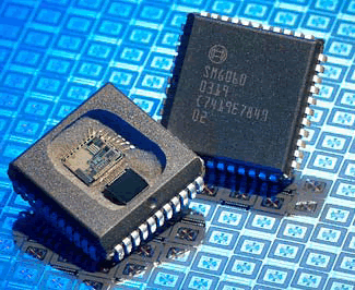 Конструктивно датчик имеет два основных блока: кристалл измерительного элемента и кристалл обрабатывающей микросхемы. Чувствительный элемент производится по технологии микрообработки и представляет собой колеблющуюся поликремниевую массу, нанесенную на пластину в условиях вакуума с осью чувствительности, находящейся в плоскости кристалла. Угловая скорость в плоскости кристалла определяется по емкостным параметрам, как и в механическом гироскопе. Под воздействием электростатической силы поликремниевая масса приводится во вращательные колебания вокруг своей центральной точки. Управляющее колебание стабилизируется электроникой микросхемы. Благодаря симметрии измерительного элемента и только одной центральной точки подвеса, датчик малочувствителен к поступательному ускорению.